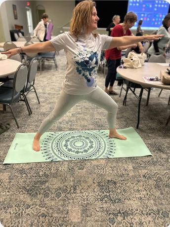 This is a picture of my cousin Ann doing a yoga pose. Ann is also a runner. She prefers to run the half marathon opposed to the full 26.2 marathon. It is just a much easier race to run. Ann has lived around the Minneapolis area for quite some time. She is now living in Florida close to her parents. She wants to see if Florida will be a good fit for her. She was nice enough to take this picture with one of my shirts on. I think it looks pretty good. My shirts are made out of polyester and have a wicking to them so they are good for working out. Hence Ann is working out with the shirt on. I don't have too much more to say. All I can say is thanks Ann for putting this together.