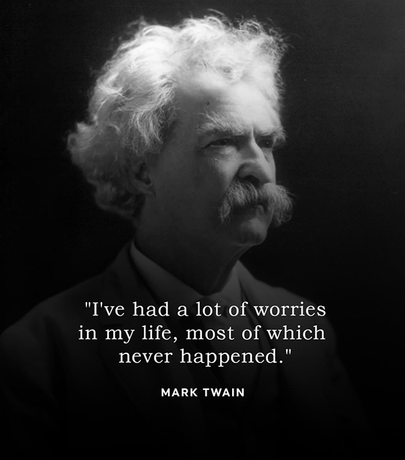 Mark Twain would have been a cool guy to know. I agree with the quote, "I've had a lot of worries in my life, most of which never happened." I think what he is trying to say is worry is all in your head. In reality things aren't as bad as they might seem. Just keep on living your life and things will turn out well. So that is what I'm going to do, not worry and keep moving ahead. Wish me luck.