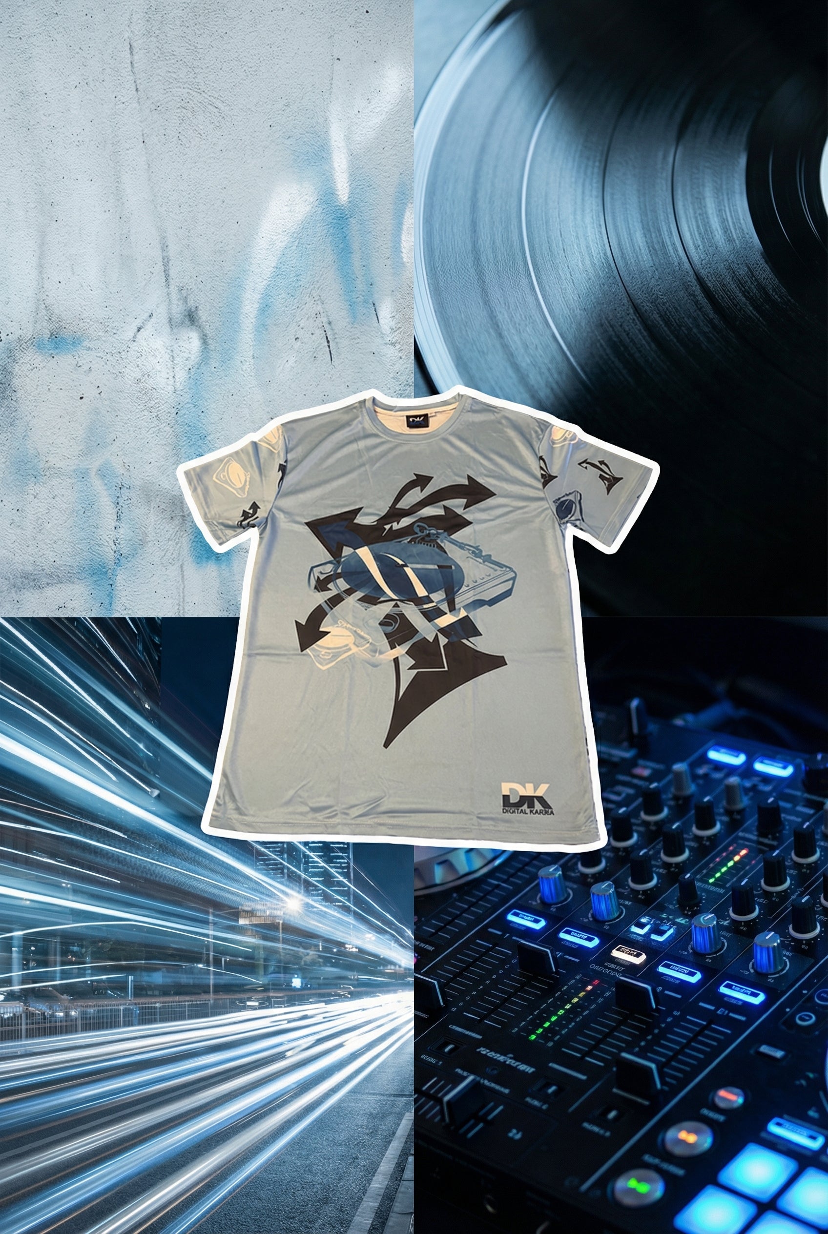 One of my favorite shirts I've ever done. Graffiti arrows and DJ machines, what could be more perfect? Try one out today, I think you'll enjoy it.